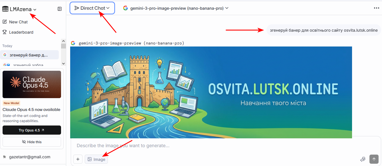 LMArena (https://lmarena.ai/) додала Nano Banana Pro до списку доступних моделей під назвою gemini-3-pro-image-review (nano-banana-pro). Тепер кожен може протестувати її в Direct Chat або Side-by-Side, порівнюючи генерації з іншими моделями. Доступні обидва режими роботи: текст → зображення та генерація за завантаженими референсами.